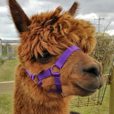 Oran was born in 2019. He is very friendly and will happily eat out of your hand and pose for photos. He is a very calm alpaca and great with children .
